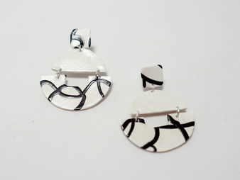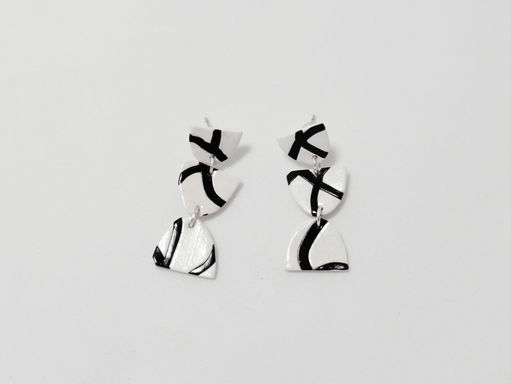 When all of your pieces are dry it's time to put them together! Using jump rings the different pieces are combined. Following this stainless steel hypoallergenic backings are carefully glued on, and then left to dry. Finally excess glue is sanded of and then the earrings are ready to be packaged!